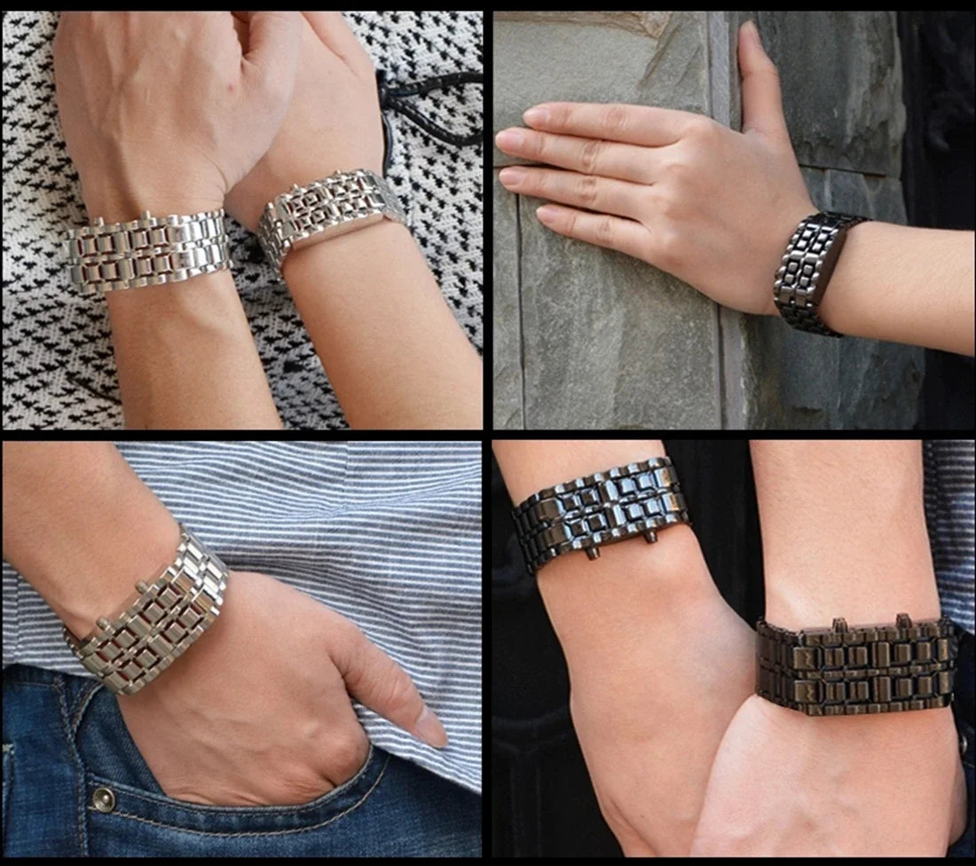 Men's LED Digital Lava Iron Samurai Sports Watch 2024 Stainless Steel Band